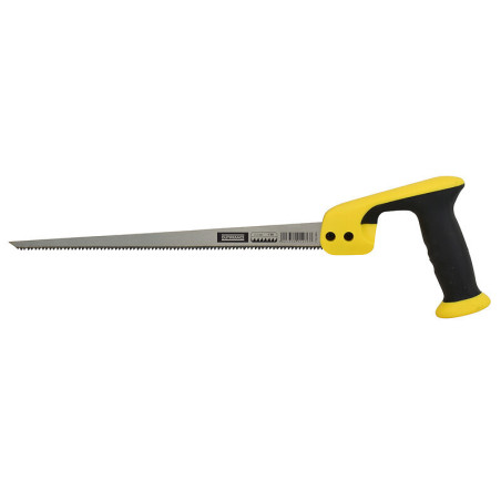 Modèle : Scie à guichet ergo - Utilisation : Bois, plastique et plaques de plâtre - Conditionnement : 1 - Nombre de dents au pouce : 8 - Longueur (mm) : 300 - Unité de vente : (1 pièce) •