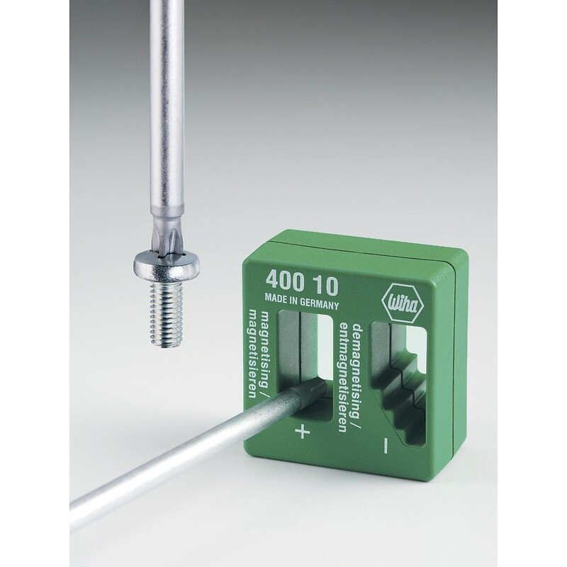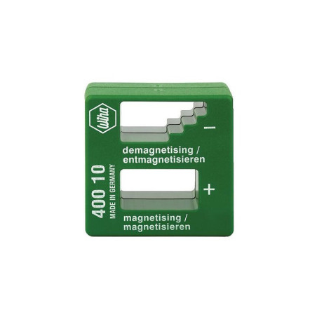 La gamme : Magnétise et démagnétise toutes les lames de tournevis et autres outils en acier. Dimensions : L52 x l50 x Ép.29 mm. •