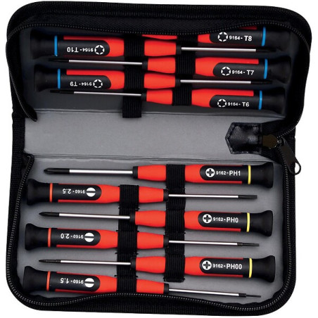 Jeu de 12 tournevis de précision - Fente/Phillips/Torx - MOB