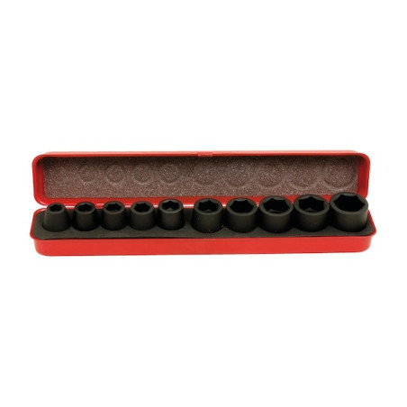 1 coffret métallique 10 douilles impact ½ : 10-11-12-13-14-17-19-21-22-24 mm Garantie à vie