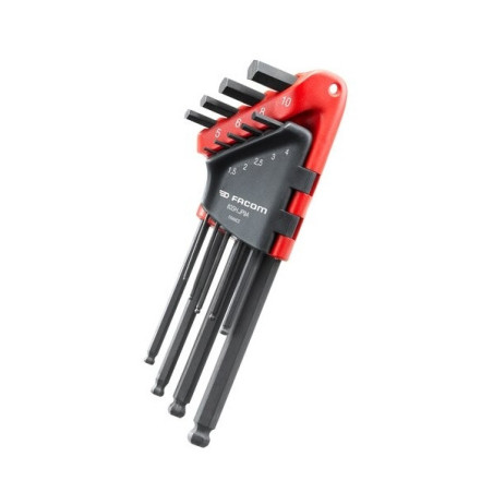 Les clés mâles longues à tête sphérique sont présentées dans un étui compact à volet rabattable permettant une sélection rapide de la dimension souhaitée.Composition :Diamètres 1.5 - 2 - 2.5 - 3 - 4 - 5 - 6 - 8 - 10 mmGarantie à vie
