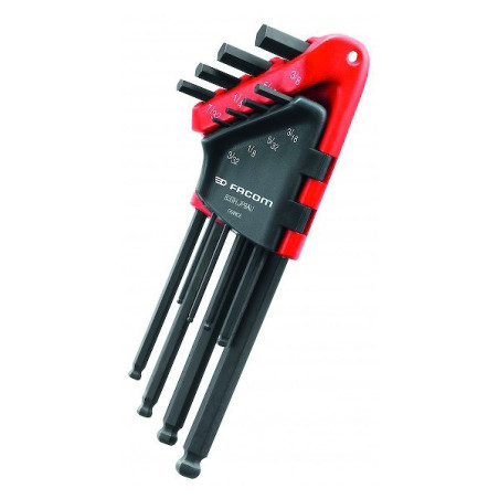 Étui compact à volet rabattable permettant une sélection rapide de la dimension souhaitéeClés mâles longues têtes sphériques en pouceDimensions : 3/32 - 1/8 - 5/32 - 3/16 - 7/32 - 1/4 - 5/16 - 3/8