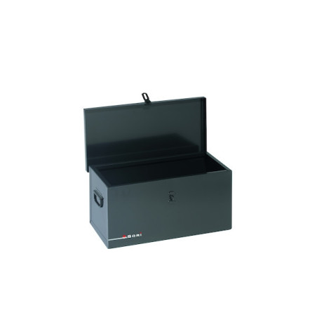 Ce coffre de chantiier possède 2 poignées sur platines garanties indéssoudables. 2 charnières avec 5 nœuds renforcées de 90mm avec une butée d’ouverture à 95° et un plateau baladeur avec angles à soudure renforcée.On peut utiliser le fermoir porte cadenas grand modèle qui est renforcé avec un trou de diamètre 14 mm qui permet de le fermer à l'aide d'un cadenas.