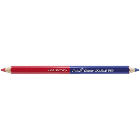 Crayon de marquage rouge et bleu en 1 seul crayon. affuté des 2 côtés. facile à tailler avec des mines épaisses de très haute qualité.