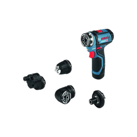 La perceuse-visseuse sans fil 12V GSR 12V-15FC SET est un outil compact offrant cinq fonctions grâce au système FlexiClick : porte-embout magnétique. porte-embout verrouillable. mandrin de perçage. renvoi d’angle et porte-embout excentrique. Sa petite taille la rend idéale pour les espaces difficiles d'accès. tout en offrant une puissance de 30 Nm. Elle dispose d'une poignée ergonomique avec revêtement en caoutchouc pour une meilleure prise en main. d'un équilibre optimisé. d'une présélection d'embrayage (20+1). d'un mandrin auto-serrant et d'une LED intégrée.Livrée en coffret L-BOXX avec 2 batteries GBA 12V 2.0Ah. 4 mandrins Flexiclic (renvoi d'angle. porte-embout excentré. mandrin de perçage. et porte-embout). Chargeur rapide GAL 1230 CV. clip de ceinture.Garantie 1 an