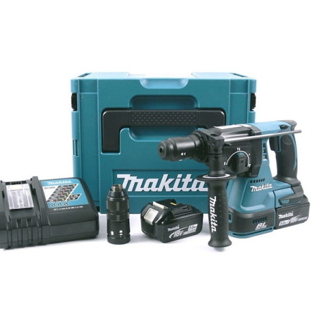 Perfo-burineur SDS-Plus 18 V Li-Ion DHR243RTJMoteur sans charbon : puissance et compacité de la machine accrues par rapport aux machines équipées de moteurs classiques Moteur sans charbon : Rendement supérieur de 40 % par rapport aux machines équipées de moteurs classiques Excellente manœuvrabilité : Poignée montée dans l'axe du foret + Centre de gravité étudié pour un équilibre parfait Mandrins interchangeables à verrouillage rapide (SDS-Plus et auto serrant) Limiteur de couple protégeant le moteur ainsi que l'utilisateur en cas de blocage