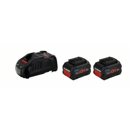 Le pack batteries et chargeur 18V comprend deux batteries ProCORE18V de 5.5Ah et un chargeur GAL 1880 CV. idéal pour les travaux exigeants. Les batteries ProCORE18V 5.5Ah. en combinaison avec les outils BITURBO. offrent une puissance équivalente à celle d'un outil filaire de 1 800 W. Grâce au chargeur GAL 1880 CV. les batteries sont rechargées à 80 % en seulement 35 minutes. La technologie COOLPACK 2.0 assure une meilleure évacuation de la chaleur. prolongeant la durée de vie des batteries. Depuis 2008. toutes les batteries sont compatibles avec les outils Bosch Professional de même voltage. anciens ou nouveaux.Garantie 1 an