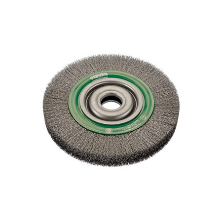 Brosse circulaire pour machine stationnaire.Alésage 32 mm + bagues de réduction (13 mm. 15 mm. 16 mm. 19 mm. 20 mm. 7/8". 1").Applications : enlèvement de la rouille. de la peinture. nettoyage. ébavurage.