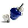 Un seau espagnol complet comprenant :- 1 seau de 12 L.- 1 essoreur.- 1 manche.- 1 balai à franges.