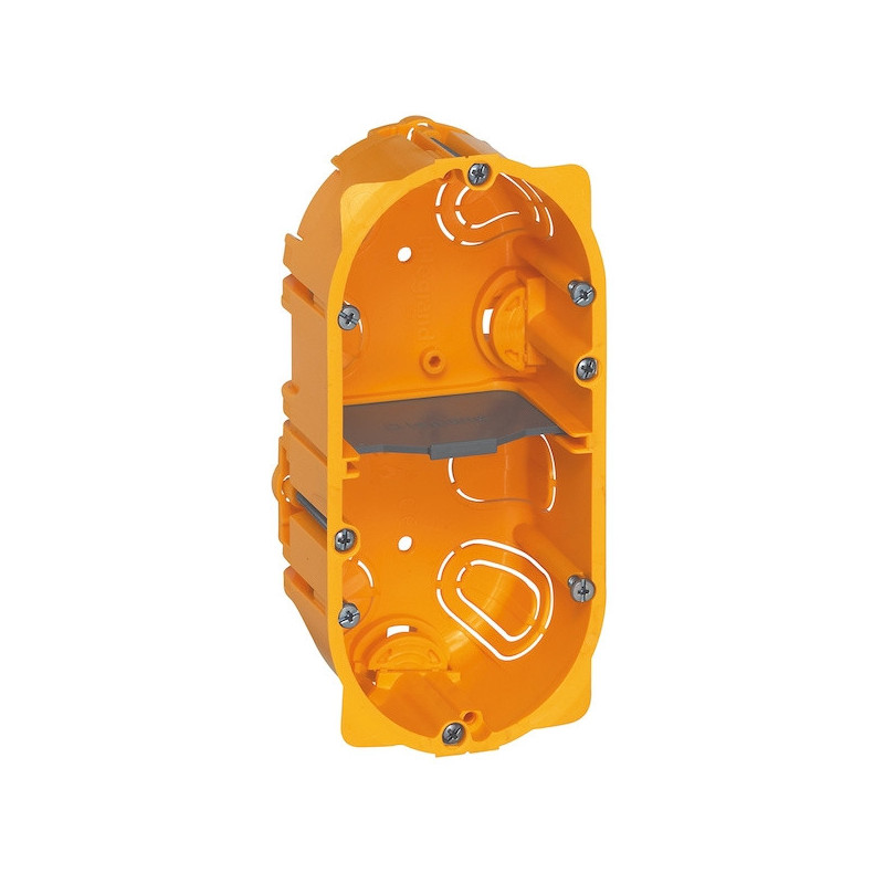 Boîte multiposte pour montage d'appareils à vis.Entraxe de perçage : 71 mm.Utilisation horizontale ou verticale.Livrée avec 1 cloison de séparation amovible pour accueil des fonctions étendues (ex. : prises pré-câblées).Garantie 2 ans