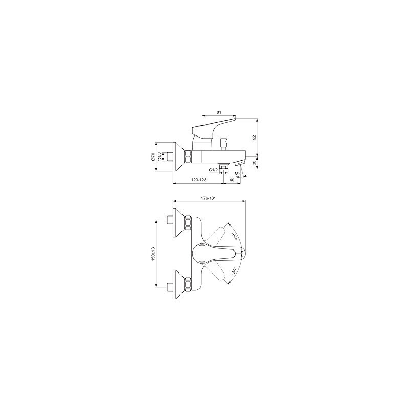 Finition : Chromé - Catégorie : Mitigeur mécanique - Appareil sanitaire : Bain-douche - Collection : Ulysse - Débit (L/min) : 22.20 - Saillie (mm) : 128 - Unité de vente : (1 pièce) •
