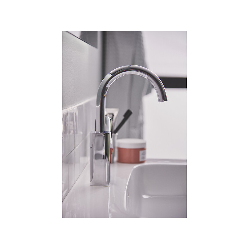 Finition : Chromé - Catégorie : Mitigeur mécanique - Appareil sanitaire : Lavabo - Débit (L/min) : 5 - Saillie (mm) : 145 - Unité de vente : (1 pièce) •