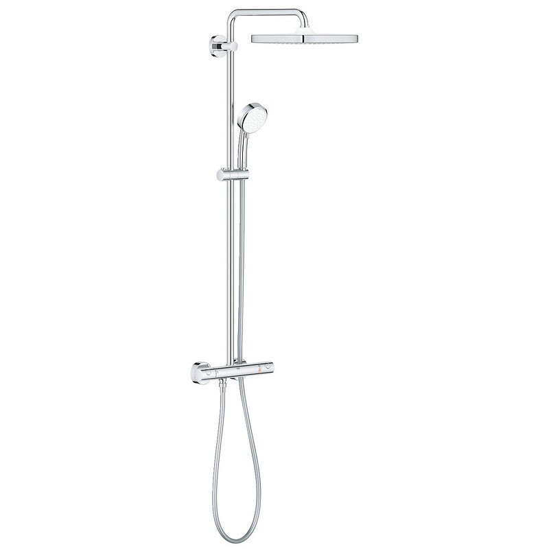 Finition : Chromé - Catégorie : Colonne de douche - Type de colonne : Jet de tête pluie - Type de mitigeur : Thermostatique - Nombre de jet (douchette) : 2 - Débit (L/min) : 9.50 - Unité de vente : (1 pièce) •
