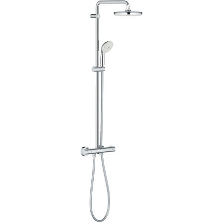 Finition : Chromé - Catégorie : Colonne de douche - Type de colonne : Jet de tête pluie - Type de mitigeur : Thermostatique - Nombre de jet (douchette) : 3 - Débit (L/min) : 9.50 - Unité de vente : (1 pièce) •