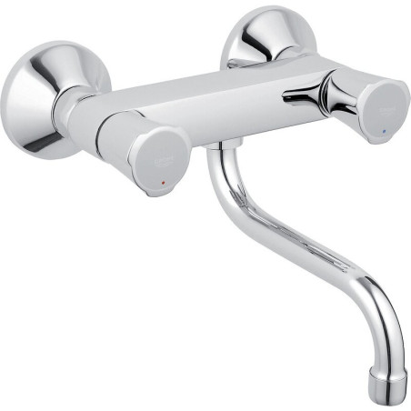 Finition : Chromé - ECAU : E1 A3 U3 - Tête : À clapet - Modèle : Évier - Collection : Costa L - Saillie (mm) : 261 - Unité de vente : (1 pièce) •