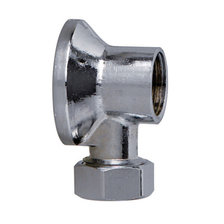 Finition : Chromé - Type : A visser - Catégorie : Raccord - Montage : Applique - Filetage : G 1/2" (15x21) - Type d'embout : Mâle-Femelle - Type de raccord : Équerre - Longueur (mm) : 15 - Embase (mm) : 46 - Unité de vente : (1 pièce) •