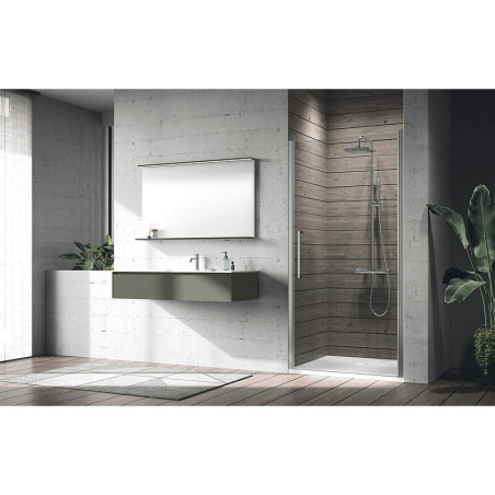 Accès : Frontal - Vitrage : Transparent - Catégorie : Parois de douche - Type d'ouverture : Pivotante - Hauteur (cm) : 200 - Unité de vente : (1 pièce) •