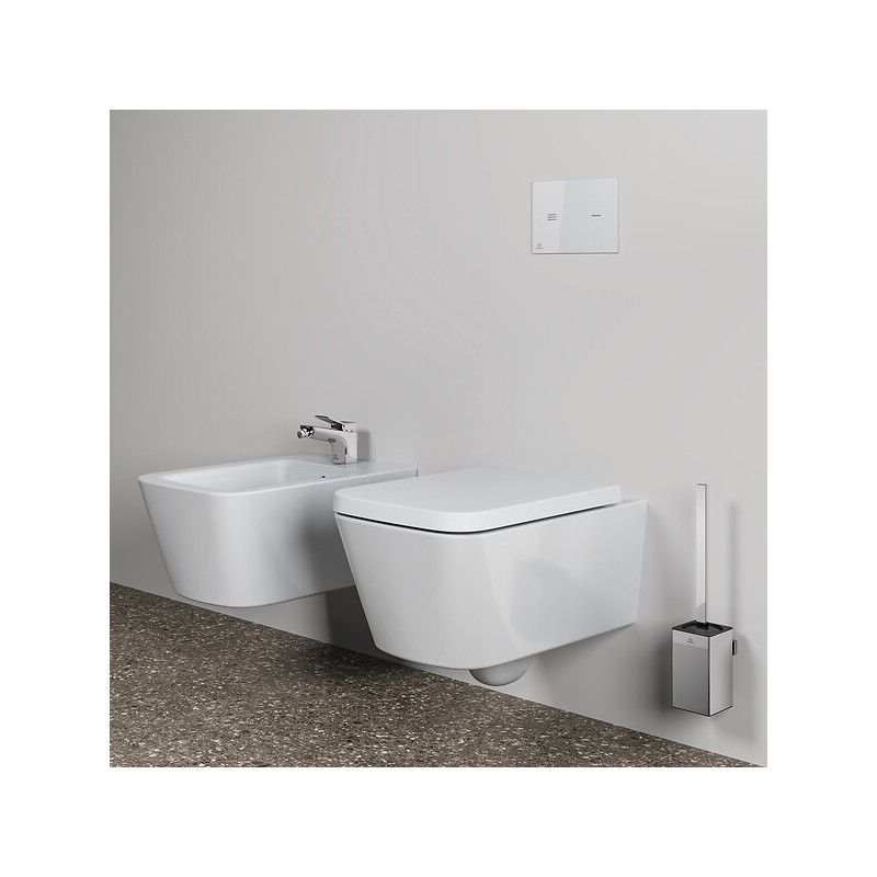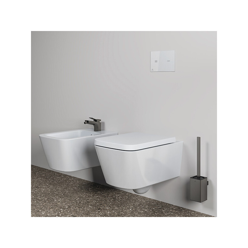 Ensemble porte-brosse et brosse wc carré Conca fixation murale •