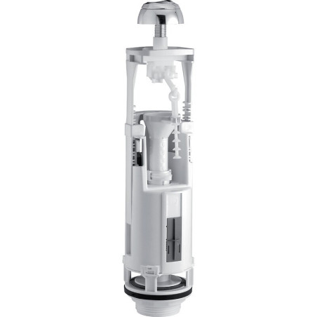Finition : Chromé - Modèle de soupape : À étrier - Bouton de commande : Poussoir - Fonctionnement de la chasse : Double volume - Volume (litre (L)) : 2 à 6 - Diamètre de perçage (millimètre (mm)) : 16 à 50 - Hauteur de réservoir (millimètre (mm)) : 282 à 450 - Réglage de trop plein (millimètre (mm)) : 185 à 325 - Unité de vente : (1 pièce) •