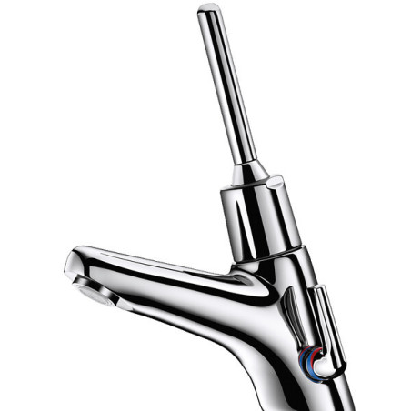 Finition : Chromé - Commande : Manette - Catégorie : Robinet temporisé - Installation : Sur plage - Raccordement : F 12x17 - Robinet d'arrêt : Oui - Appareil sanitaire : Lavabo et lave-main - Type de robinetterie : Mitigeur - Débit (L/min) : 3 - Saillie (mm) : 115 - Durée d'écoulement (s) : 7 - Unité de vente : (1 pièce) •
