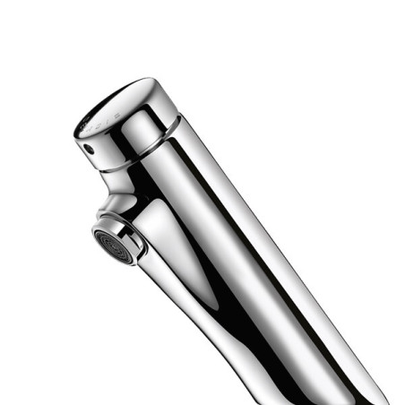 Finition : Chromé - Modèle : Temposoft - Commande : Poussoir - Catégorie : Robinetterie temporisé et électronique - Installation : Sur plage - Raccordement : M 15x21 - Appareil sanitaire : Lavabo et lave-main - Type de robinetterie : Robinet simple - Débit (L/min) : 3 - Saillie (mm) : 105 - Durée d'écoulement (s) : 7 - Unité de vente : (1 pièce) •