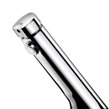 Finition : Chromé - Modèle : Temposoft - Commande : Poussoir - Catégorie : Robinetterie temporisé et électronique - Installation : Sur plage - Raccordement : M 15x21 - Appareil sanitaire : Lavabo et lave-main - Type de robinetterie : Robinet simple - Débit (L/min) : 3 - Saillie (mm) : 100 - Durée d'écoulement (s) : 7 - Unité de vente : (1 pièce) •