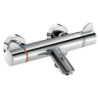 Finition : Chromé - Matière : Laiton - Catégorie : Robinetterie - Poignée : Croisillon à ergot - Installation : Murale - Raccordement : Raccord excentrique 15x21 - Appareil sanitaire : Baignoire - Type de robinetterie : Thermostatique - Unité de vente : (1 pièce) •