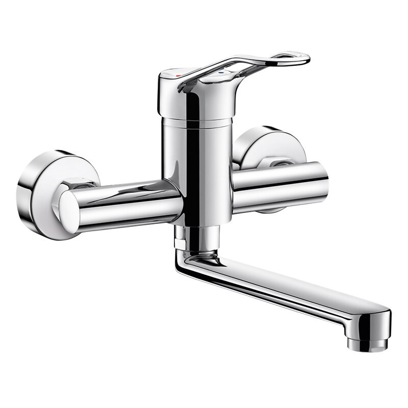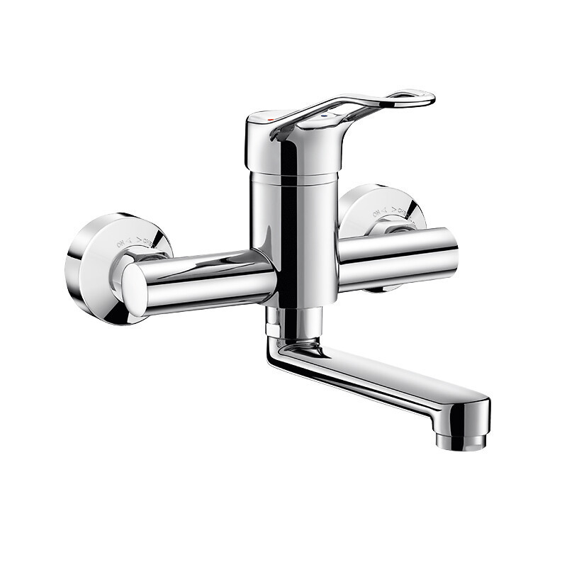 Matière : Laiton - Finition : Chromé - Catégorie : Robinetterie - Conditionnement : 1 - Installation : Murale - Raccordement : M 15x21 - Appareil sanitaire : Lavabo - Type de robinetterie : Mitigeur - Type de bec : Orientable - Débit (L/min) : 5 - Saillie (mm) : 150 - Diamètre de cartouche (mm) : 40 - Unité de vente : (1 pièce) •