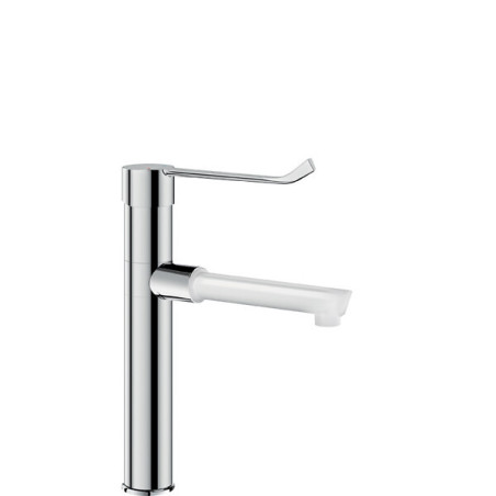 Finition : Chromé - Catégorie : Robinetterie - Appareil sanitaire : Lavabo - Raccordement : F 12x17 - Modèle : Levier - Débit (L/min) : 5 - Saillie (mm) : 180 - Unité de vente : (1 pièce) •