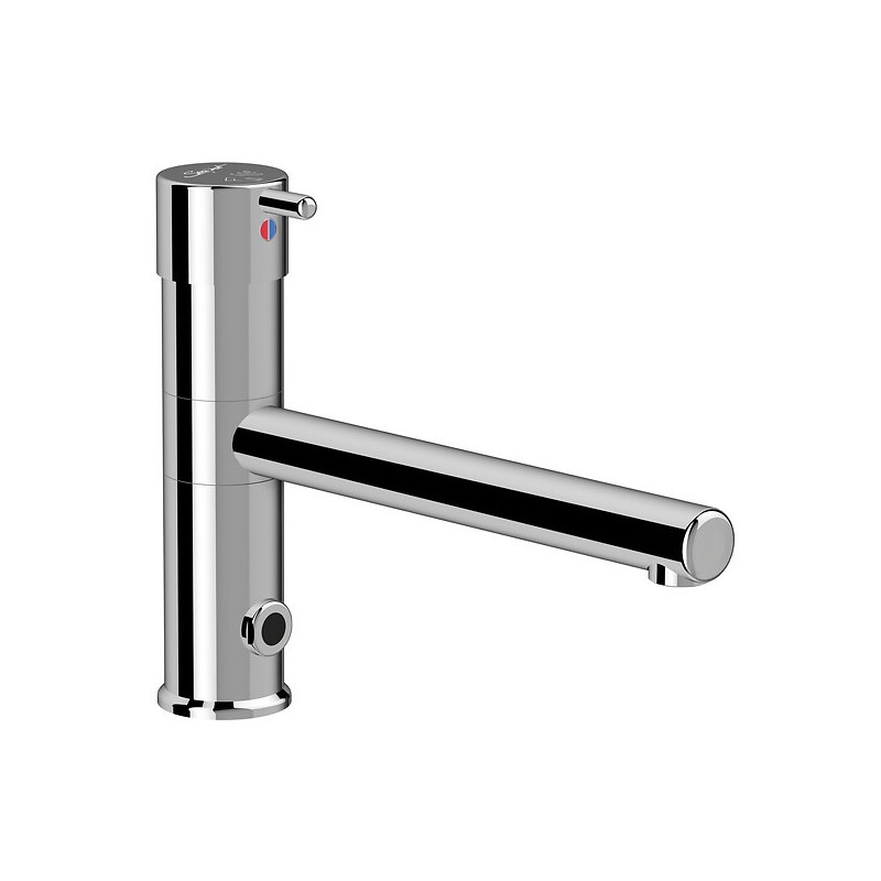 Matière : Laiton - Finition : Chromé - Poignée : Courte - Catégorie : Robinet optoélectronique - Type de bec : Fixe ou orientable - Installation : Sur plage - Raccordement : G 12x17 - Conditionnement : 1 - Appareil sanitaire : Lavabo - Type de robinetterie : Optoélectronique - Hauteur de bec (mm) : 100 - Diamètre de cartouche (mm) : 40 - Débit (litre par minute (L/min)) : 4 à 6 - Unité de vente : (1 pièce) •