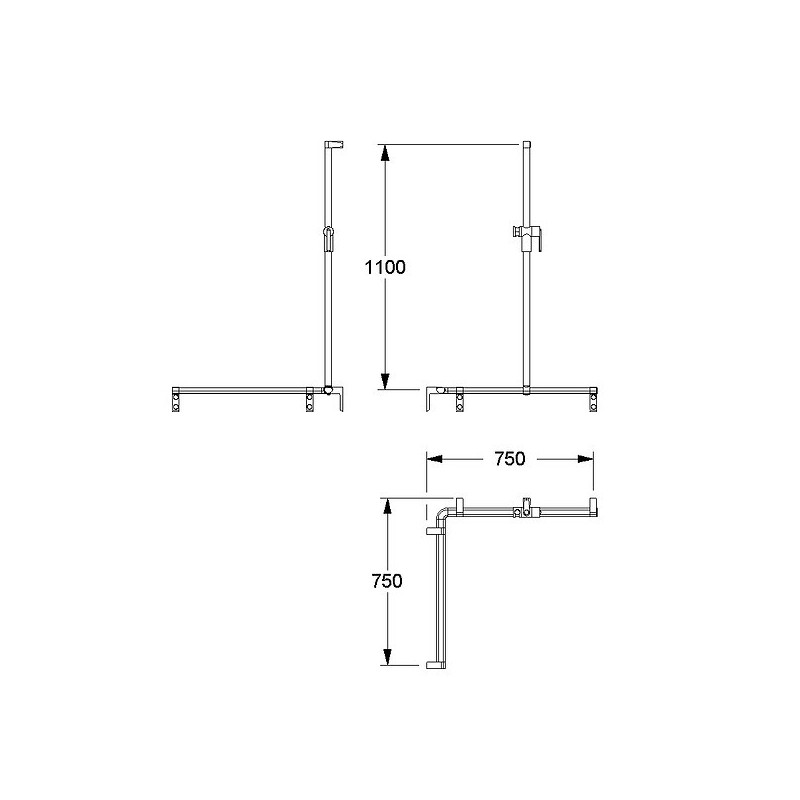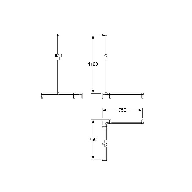 Main courante avec support douchette Cavere Care 750x750x1100 mm •