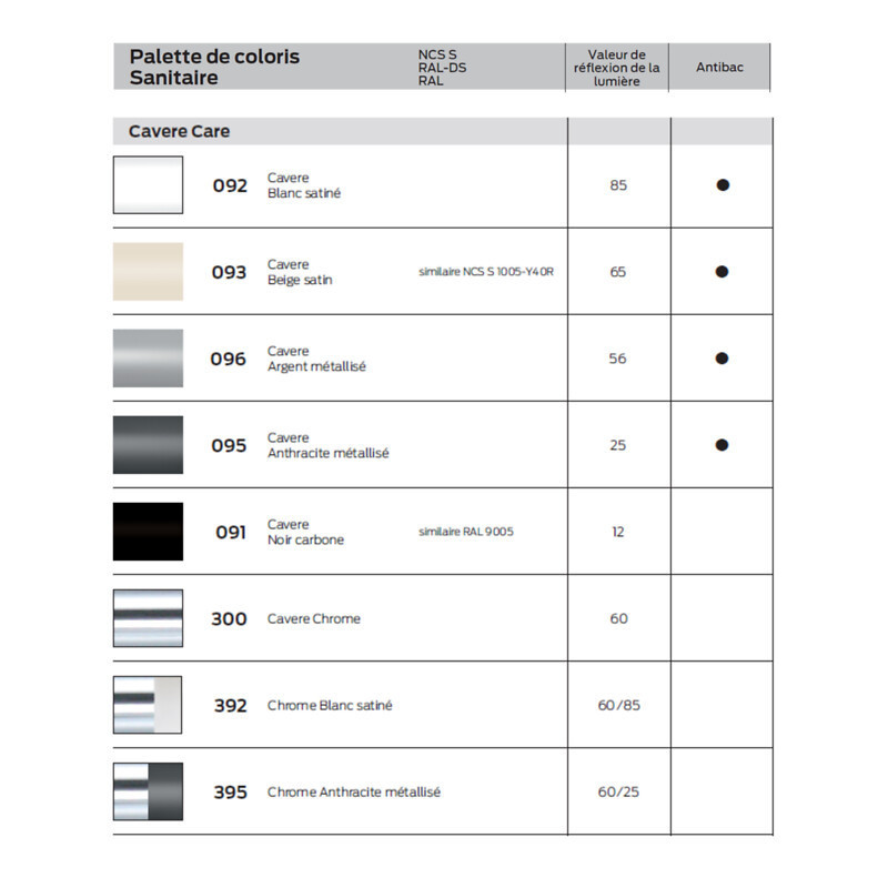 Série : Cavere Care - Catégorie : Main courante - Installation : Résidentiel et hôtellerie - Hauteur (mm) : 85 - Longueur (mm) : 1200 - Unité de vente : (1 pièce) •