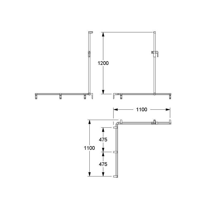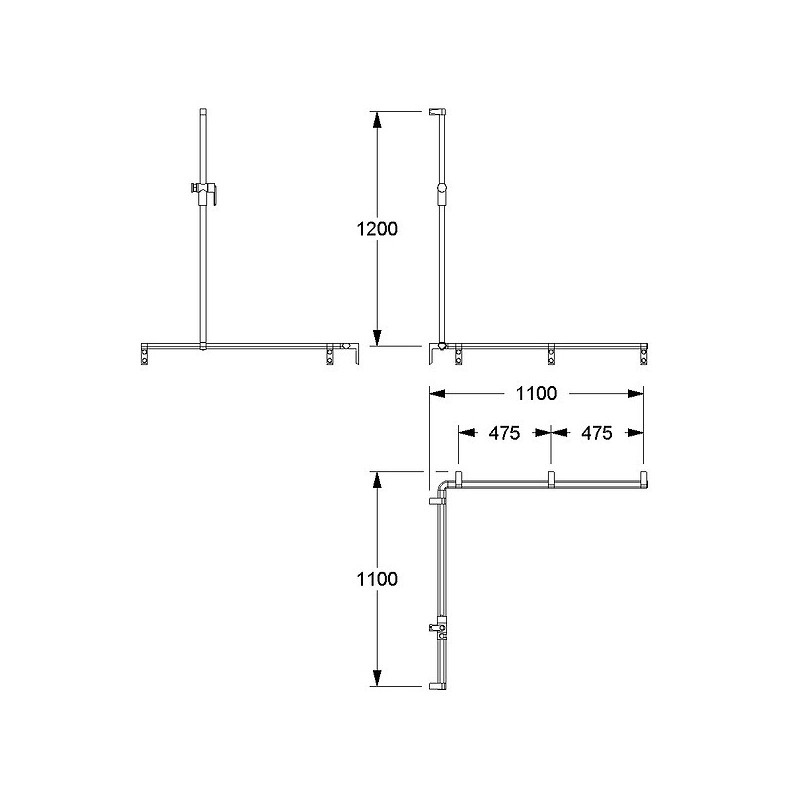 Main courante avec support douchette Cavere Care 1100x1100x1200 mm •