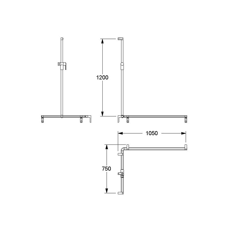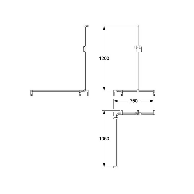 Main courante de maintien avec support douchette Cavere Care 1050x750x1200 mm - NORMBAU