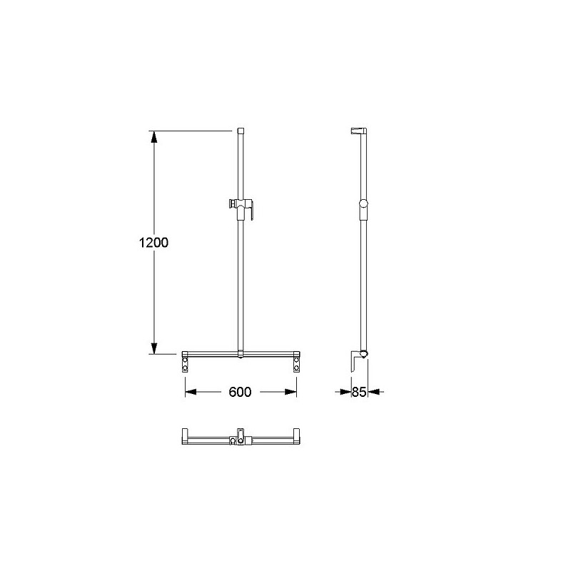 Main courante T avec support douchette réglable Cavere Care 600 x 1200 mm •