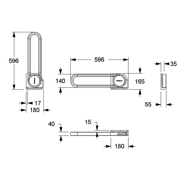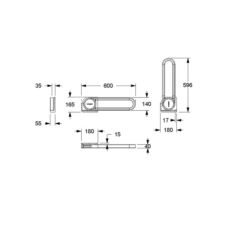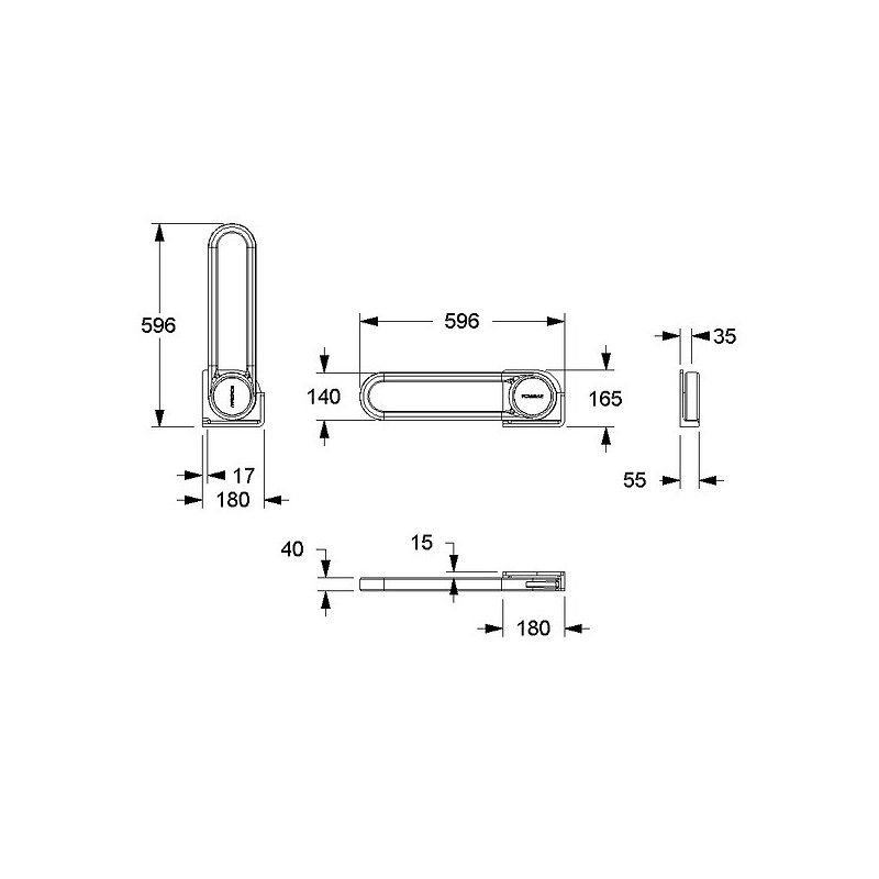 Série : Cavere Care - Catégorie : Barre d'appui - Type de barre : Barre rabattable fixation latérale - Hauteur (mm) : 165 - Largeur (mm) : 55 - Longueur (mm) : 600 - Unité de vente : (1 pièce) •