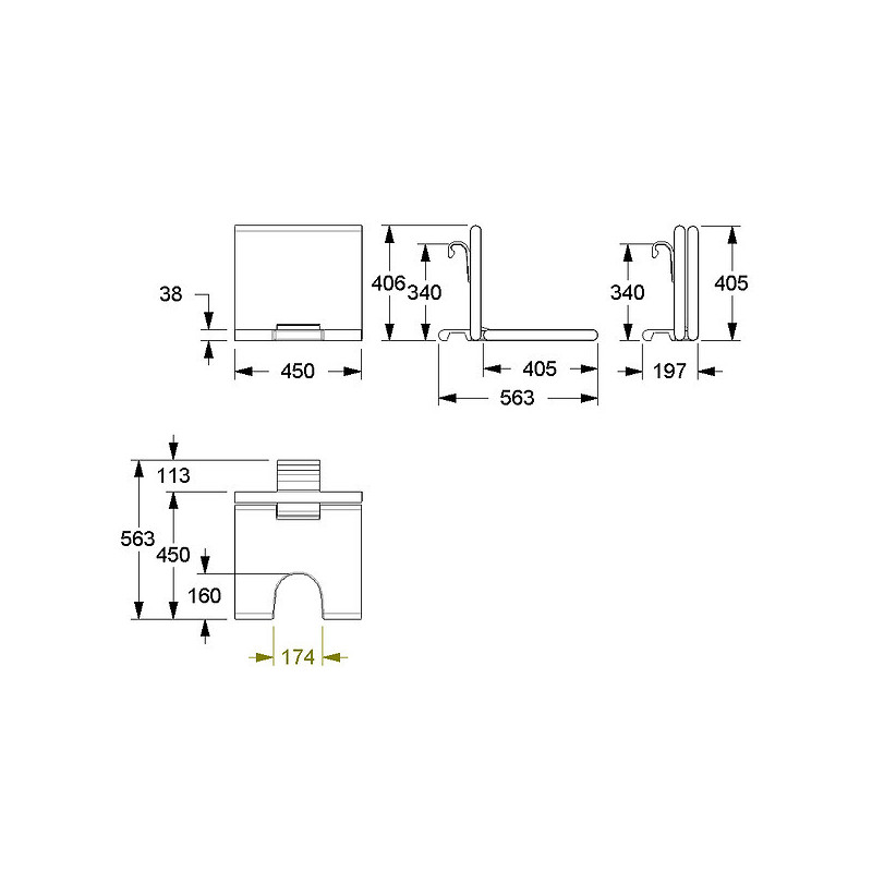 Série : Cavere Care - Catégorie : Siège de douche - Longueur (mm) : 450 - Profondeur (mm) : 563 - Unité de vente : (1 pièce) •