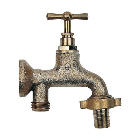 Matière : Laiton - Finition : Grenaillé - Catégorie : Robinet de puisage/arrosage - Sortie : 20x27 - Entrée : 15x21 - Spécification : Applique intégrée - Type d'ouverture : Potence - Unité de vente : (1 pièce) •