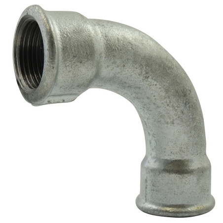 Matière : Fonte - Finition : Galvanisé - Catégorie : Raccord fonte - Type d'embout : Femelle - Type de raccord : Coude - Type de raccordement : À visser - Unité de vente : (1 pièce) •