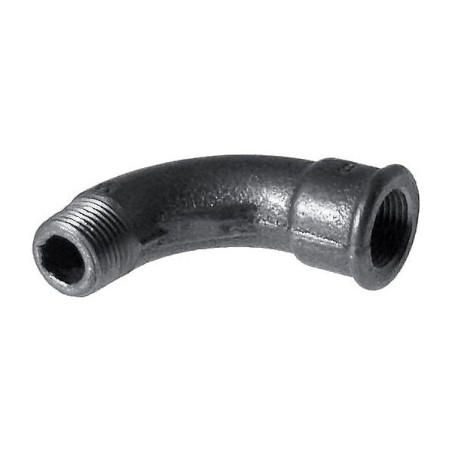 Matière : Fonte - Finition : Noir - Catégorie : Raccord fonte - Type d'embout : Mâle-Femelle - Type de raccord : Courbe - Type de raccordement : À visser - Unité de vente : (1 pièce) •