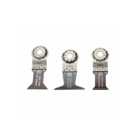 Pour les travaux de sciage dans le bois et le métal.Pour tous les MultiTools FEIN ainsi que pour tous les autres MultiTools courants avec porte-outil Starlock.Composition :2 lames de scie E-Cut Long-Life (50 x 35 mm. 50 x 65 mm).1 lame de scie universelle E-Cut (55 x 44 mm).