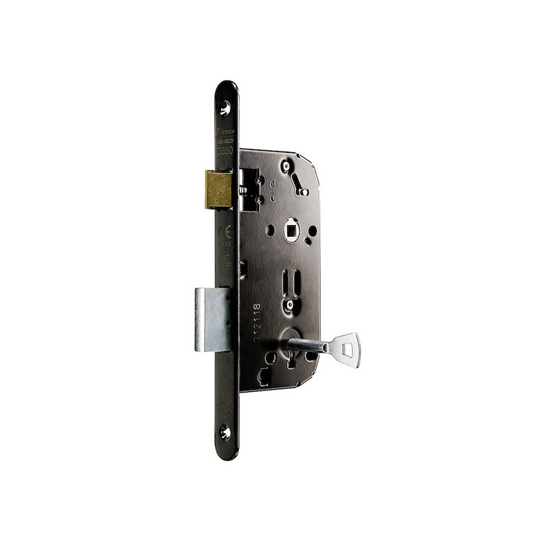 Serrure à larder 1 point D351- 50 mm - pêne 1/2 tour - bout rond - noir