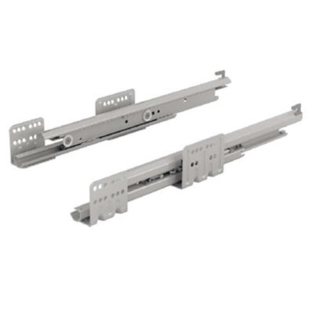 Coulisse à sortie totale.Avec système d'amortissement intégré Silent System.Utilisation possible en option de Push to open Silent.Acier zingué.Kit composé de :1 coulisse Actro. à gauche et à droite.Accessoires de fixation.