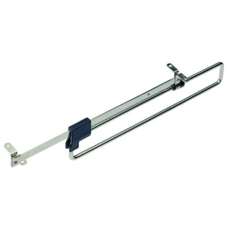Pour un montage sous l'étagère. Télescopique. Longueur 310 mm. étirée 488 mm. Capacité de charge 6 kg. Matière : acier nickelé.