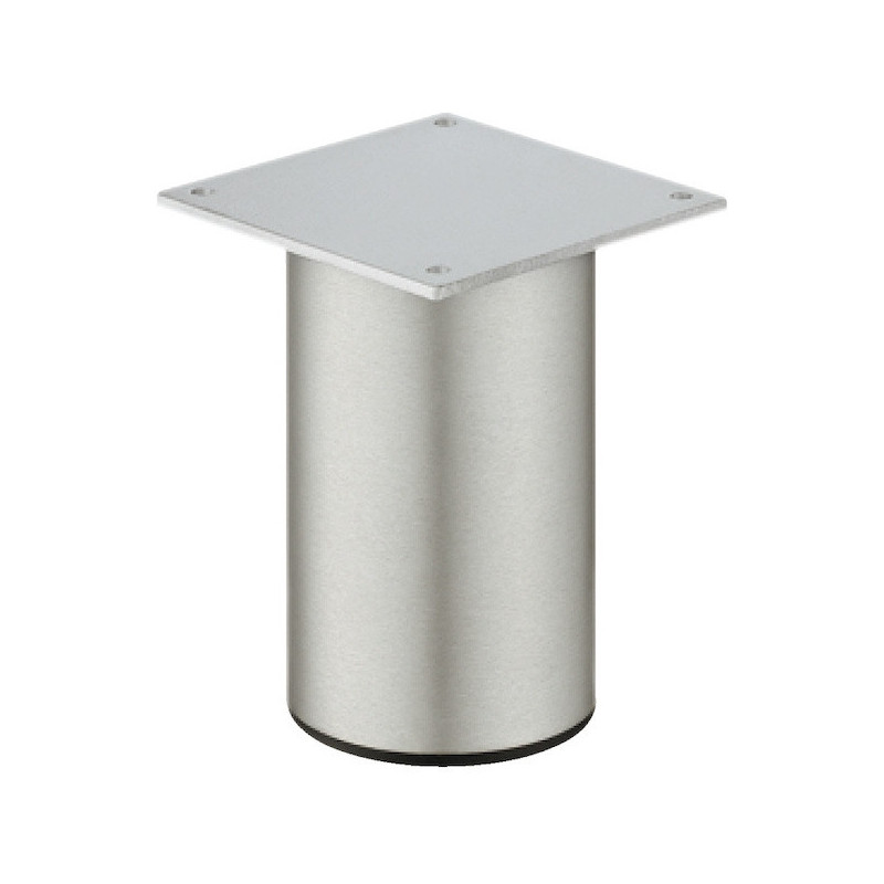 Pied de meuble. sans réglage en hauteur. avec plaque. aluminium. aspect inox.